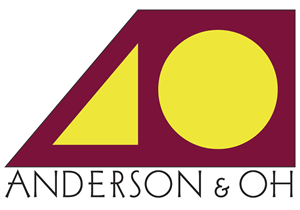 Anderson & Oh Architectural Firm Logo The shapes used for the logo resemble the tools of the architect, a triangle and circle template. The dark red and yellow and the type face express the sophistication of the firm.